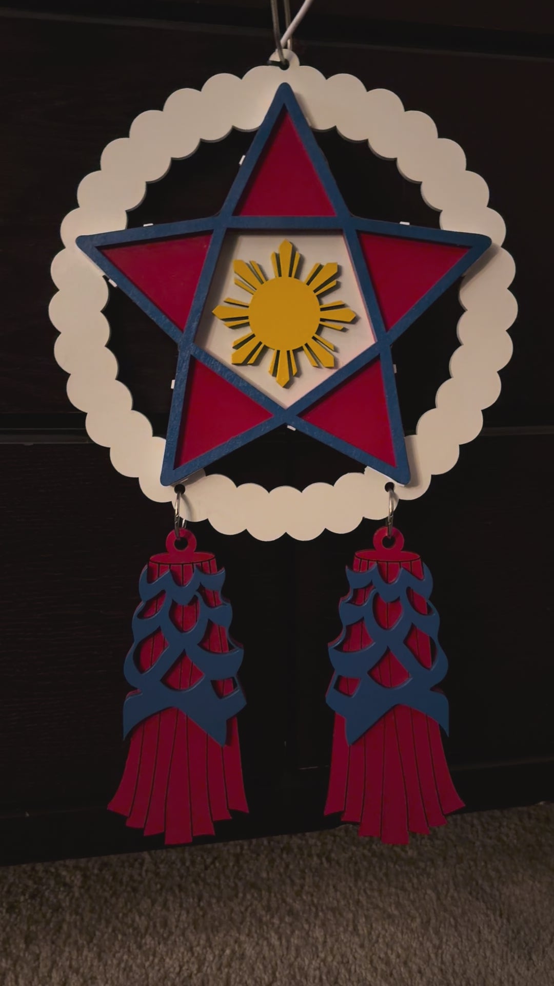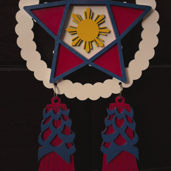 18” Light Up Wood Parol - White, Red, Blue